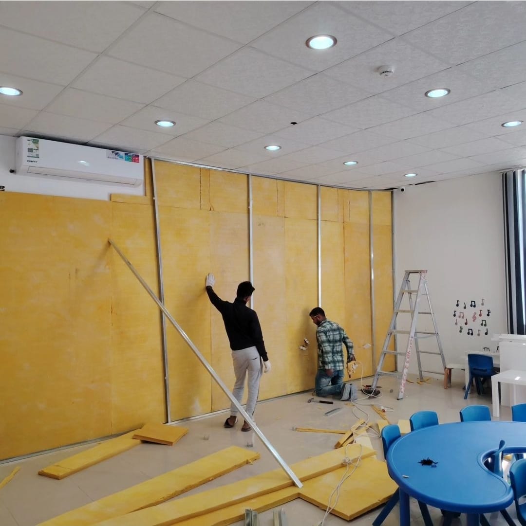 يتم تركيب مواد عازلة داخل الجدران أو على سطحها لتقليل انتقال الصوت بين الغرف أو من الخارج.
